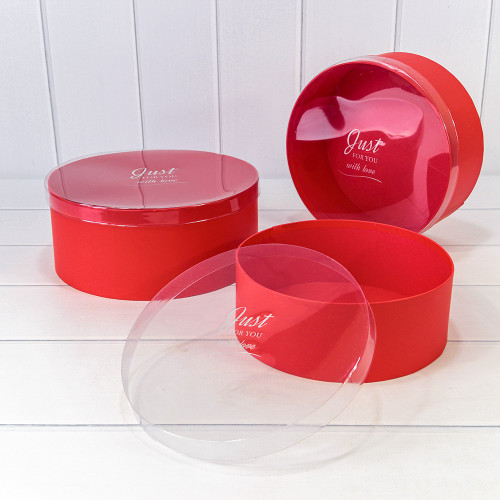 Коробка 26.5х11.2 см Набор 3 шт "Дизайнерская" с прозрачной крышкой (Красный)