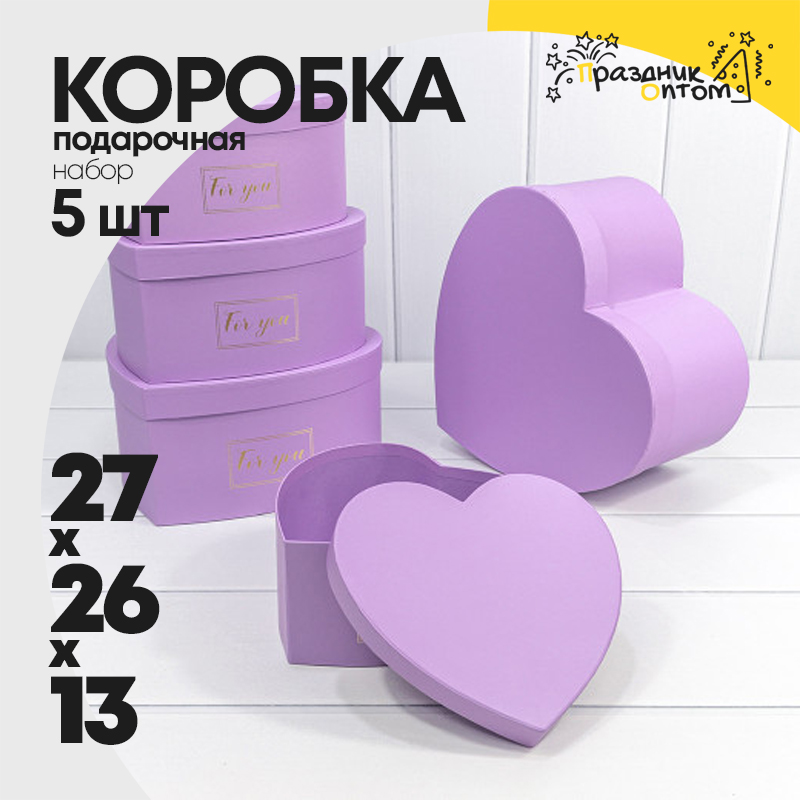 Коробка 27х26х13 см Набор 5 шт "Сердце" (Сиреневый)