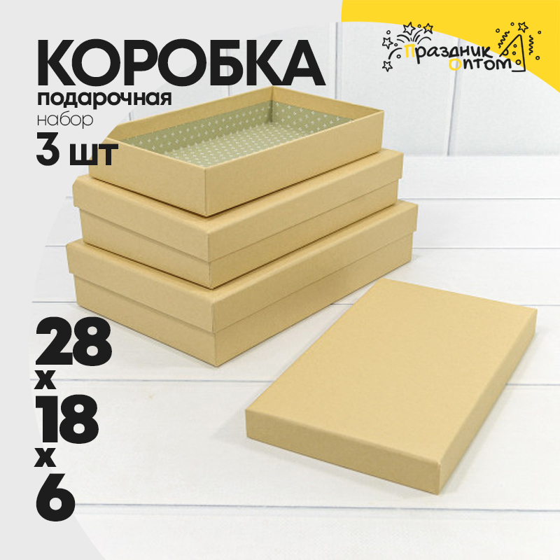 Коробка 28х18х6 см Набор 3 шт (Коричневый)