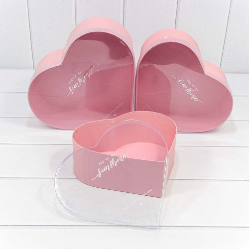 Коробка 28х25.2х11 см Набор 3 шт "Сердце" с прозрачной крышкой (Розовый)