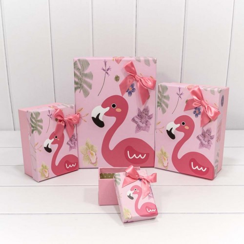 Коробка 29х21х11.5 см Набор 4 шт "Фламинго на розовом фоне" (Розовый)