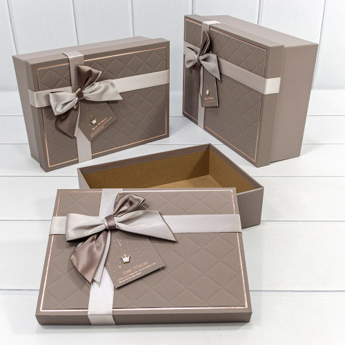 Коробка 29х21х9.5 см Набор 3 шт с двойным бантом и короной (Серый)