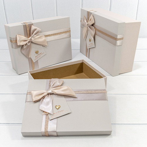 Коробка 29х21х9.5 см Набор 3 шт с двойным бантом и сердечком (Пудровый)
