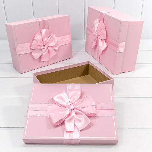 Коробка 29х21х9.5 см Набор 3 шт с двойным бантом (Розовый)