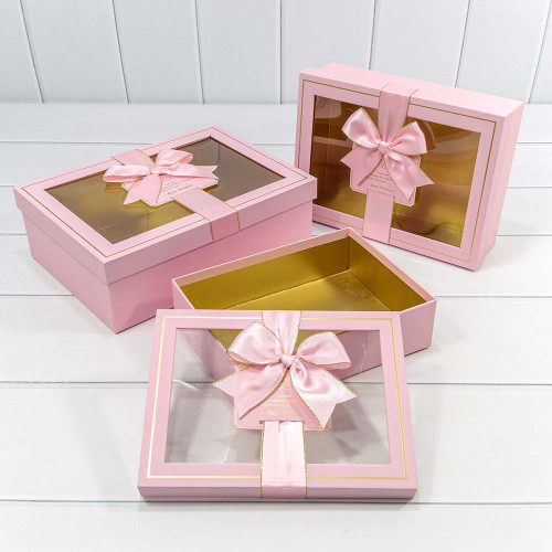 Коробка 29х21х9.5 см Набор 3 шт с окошком (Розовый)