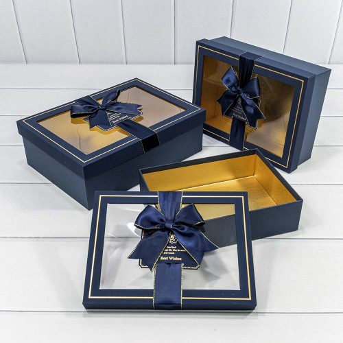 Коробка 29х21х9.5 см Набор 3 шт с окошком (Синий)