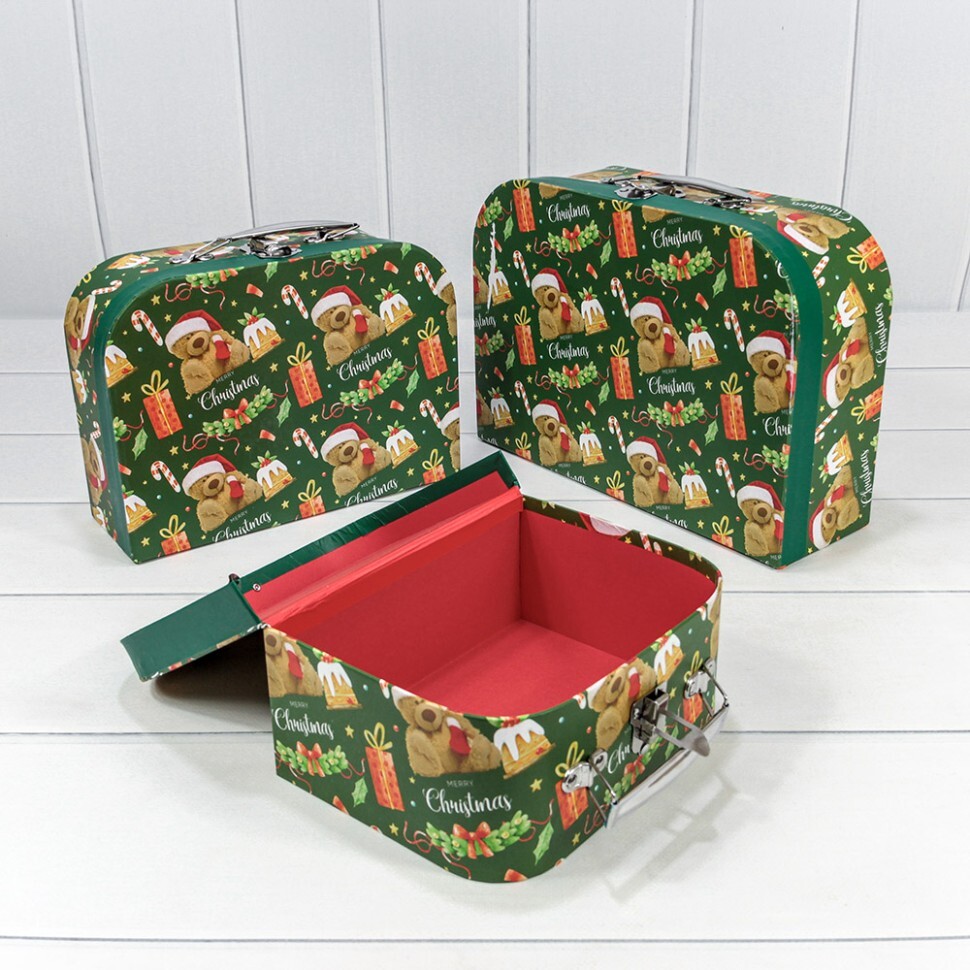 Коробка 30 х 21 х 9.6 см Набор 3 шт "Чемодан" (Зеленый)