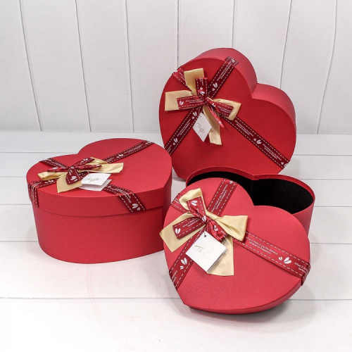 Коробка 31х29х15 см Набор 3 шт "Сердце" Бант с надписью (Красный)