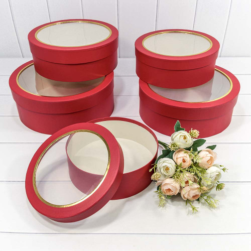 Коробка 32х12 см Набор 5 шт с окошком (Красный)