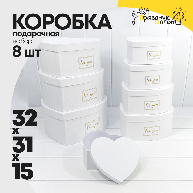 Коробка 32х31х15 см Набор 8 шт "Сердце" (Белый)