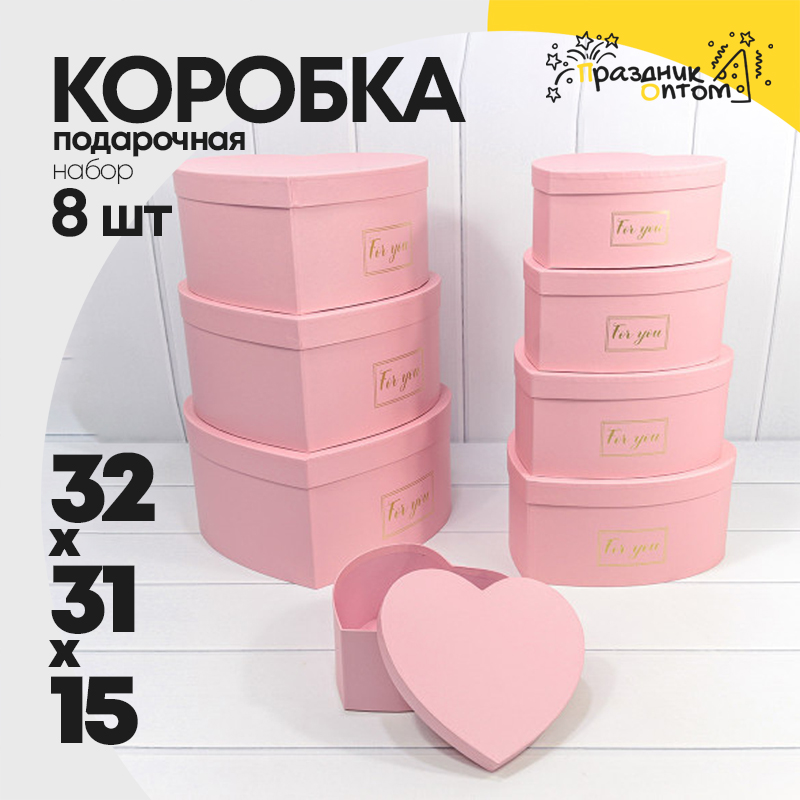 Коробка 32х31х15 см Набор 8 шт "Сердце" (Розовый)