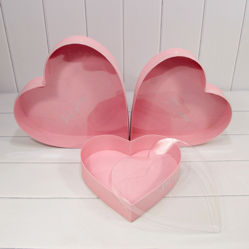 Коробка 33.2х33.2х6.6 см Набор 3 шт "Сердце" с прозрачной крышкой (Розовый)