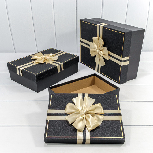 Коробка 33.5х25х11.5 см Набор 3 шт "Блеск" с бантом (Черный)