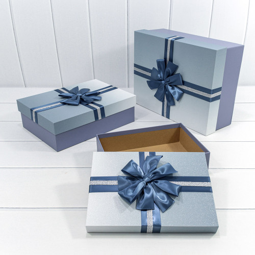 Коробка 33.5х25х11.5 см Набор 3 шт "Градиент" с бантом (Синий)