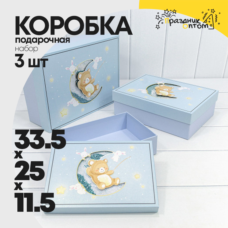 Коробка 33.5х25х11.5 см Набор 3 шт "Мишка" (Голубой)