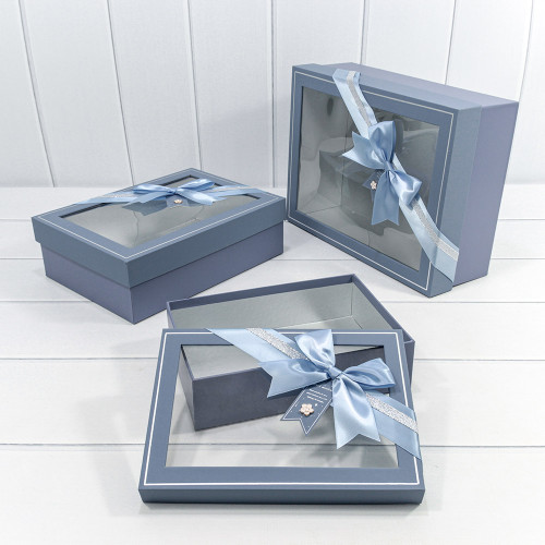 Коробка 33.5х25х11.5 см Набор 3 шт с окошком и бантом (Синий)