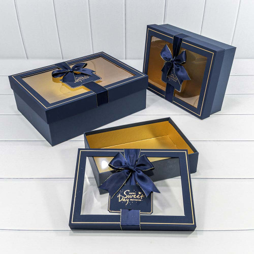 Коробка 33.5х25х11.5 см Набор 3 шт с окошком (Синий)