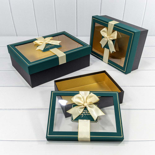 Коробка 33.5х25х11.5 см Набор 3 шт с окошком (Зеленый, Черный)