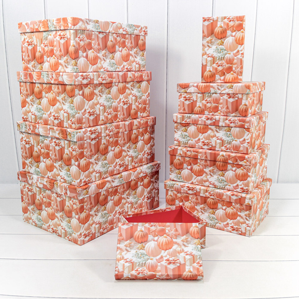Коробка 34 х 26 х 15.3 см Набор 10 шт "Новый год" (Оранжевый)