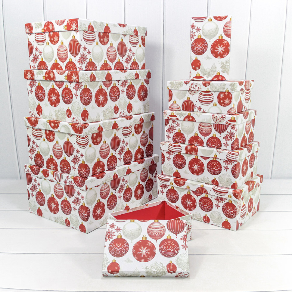 Коробка 34 х 26 х 15.3 см Набор 10 шт "Новый год" (Белый)
