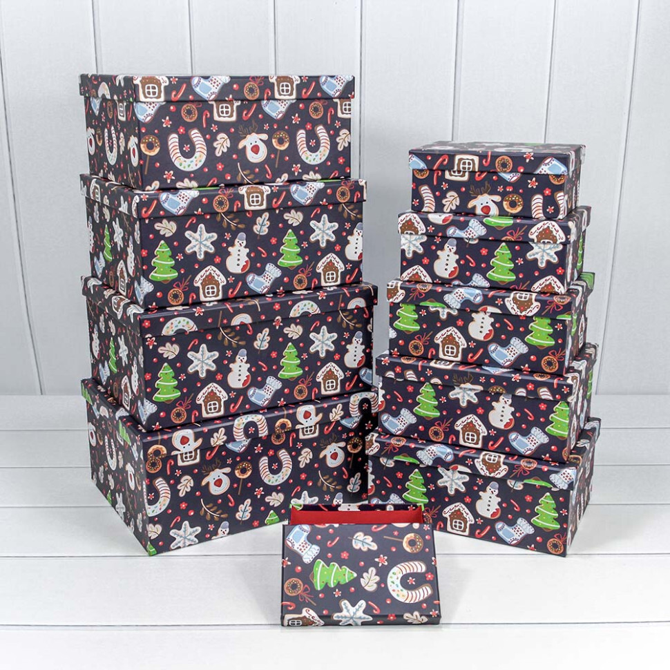Коробка 34 х 26 х 15.3 см Набор 10 шт "Новый год" (Черный)