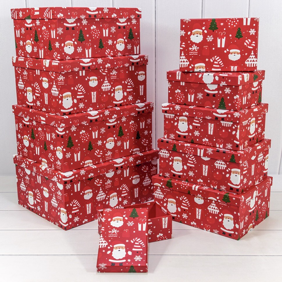 Коробка 34 х 26 х 15.3 см Набор 10 шт "Новый год" (Красный)
