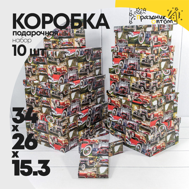 Коробка 34х26х15.3 см Набор 10 шт "Автомобили ретро" (Микс)