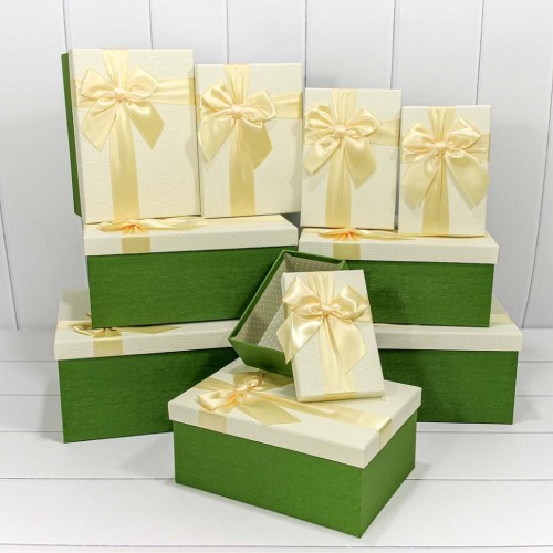 Коробка 34х26х15.3 см Набор 10 шт "Бант" (Бежевый, Зеленый)