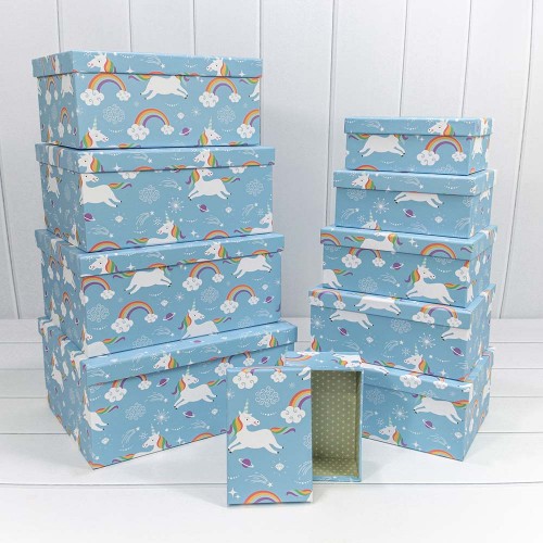 Коробка 34х26х15.3 см Набор 10 шт "Единороги на голубом фоне" (Голубой)