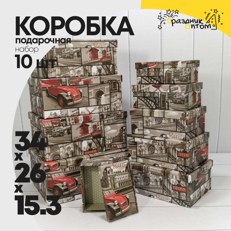 Коробка 34х26х15.3 см Набор 10 шт "Европа" (Серый)