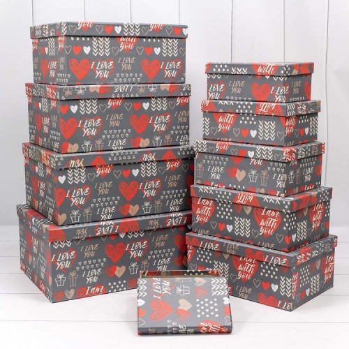 Коробка 34х26х15.3 см Набор 10 шт "I love you" (Серый)