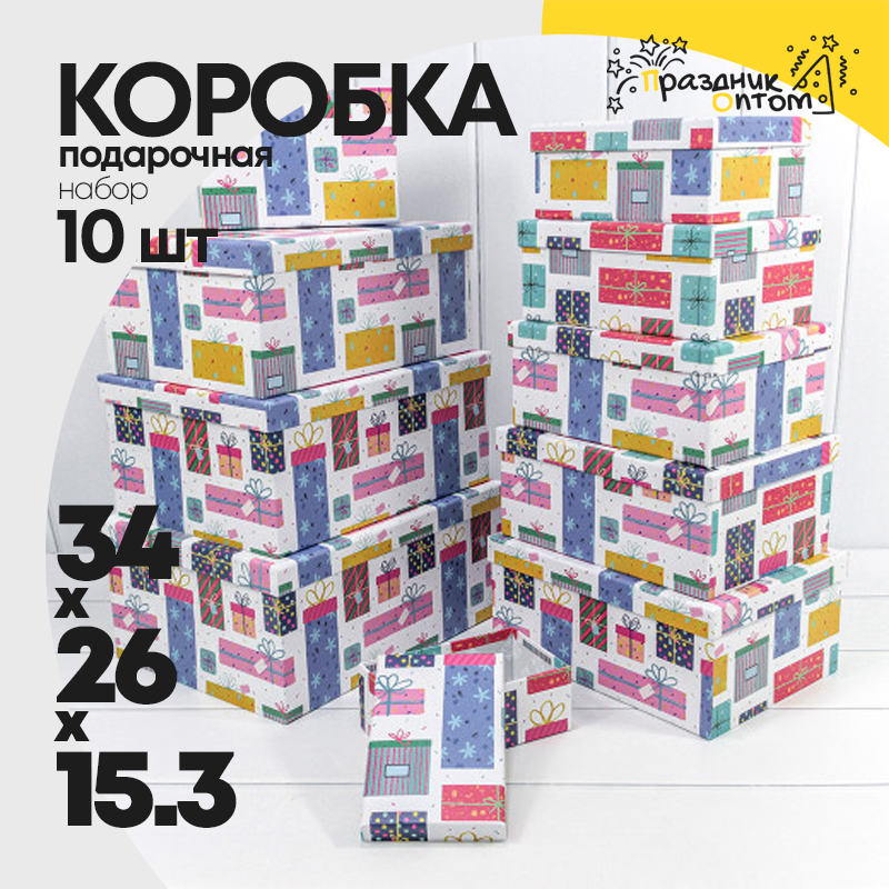 Коробка 34х26х15.3 см Набор 10 шт "Подарки" (Белый)
