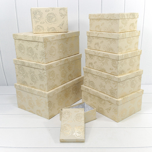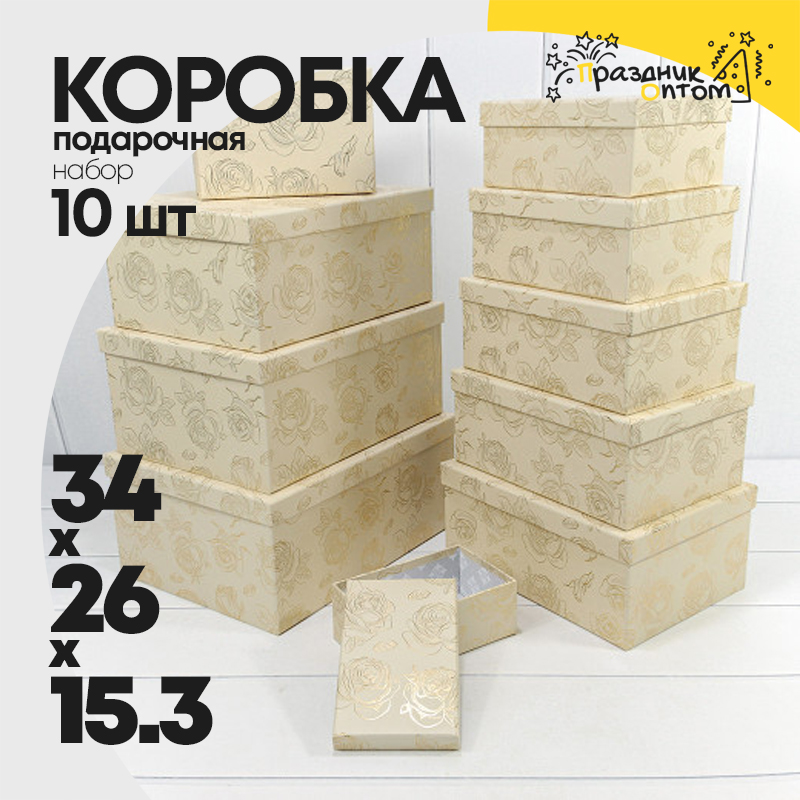 Коробка 34х26х15.3 см Набор 10 шт "Розы" с тиснением (Бежевый)