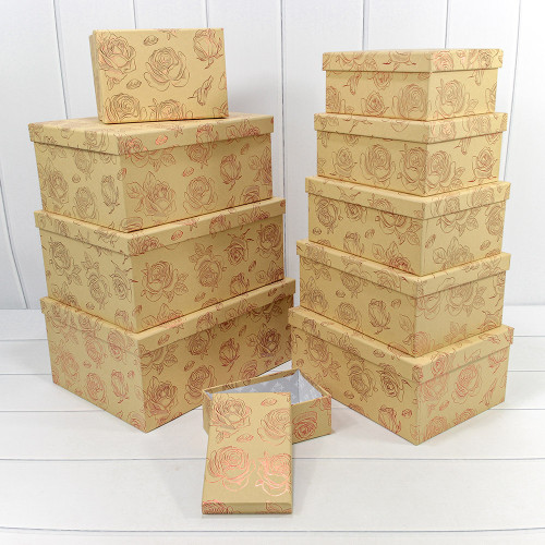 Коробка 34х26х15.3 см Набор 10 шт "Розы" с тиснением (Коричневый)
