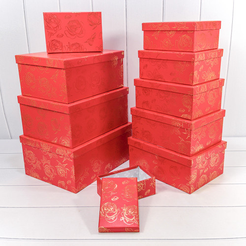 Коробка 34х26х15.3 см Набор 10 шт "Розы" с тиснением (Красный)