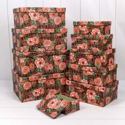 Коробка 34х26х15.3 см Набор 10 шт "Шиповник на коричневом фоне" (Коричневый)