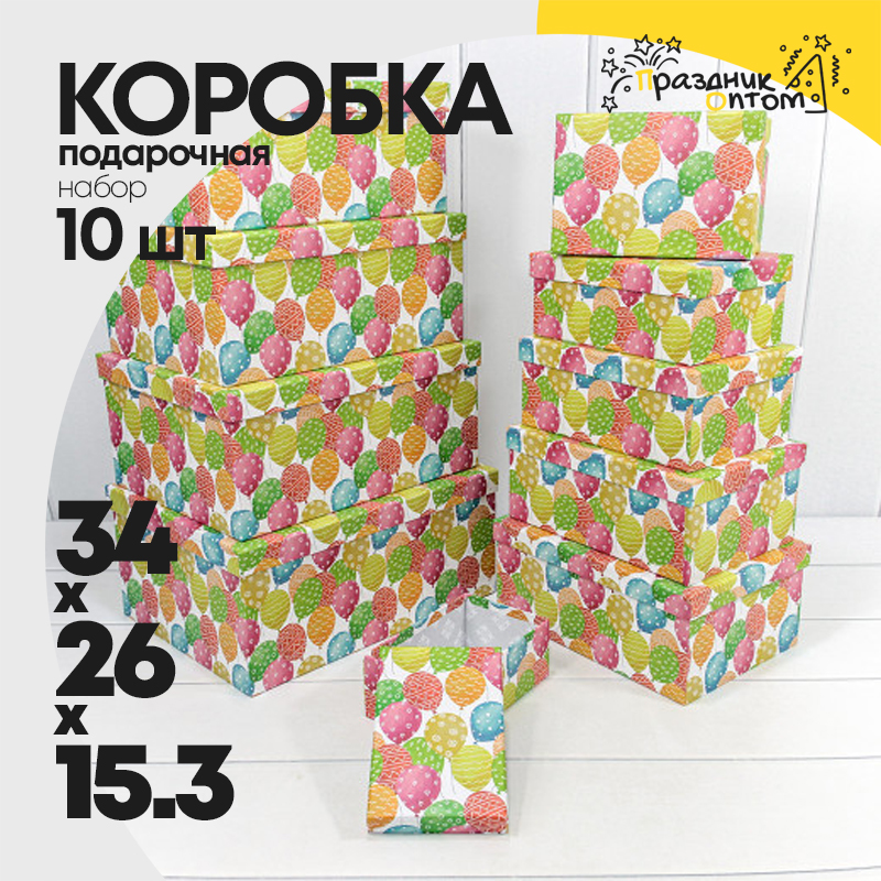 Коробка 34х26х15.3 см Набор 10 шт "Воздушные шарики" (Микс)