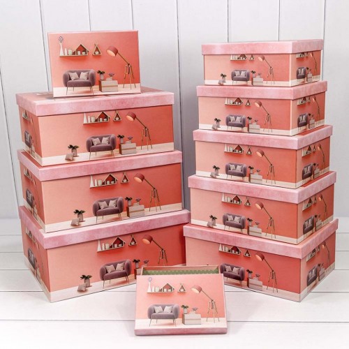 Коробка 37.5х29х16 см Набор 10 шт "Интерьер" (Розовый)