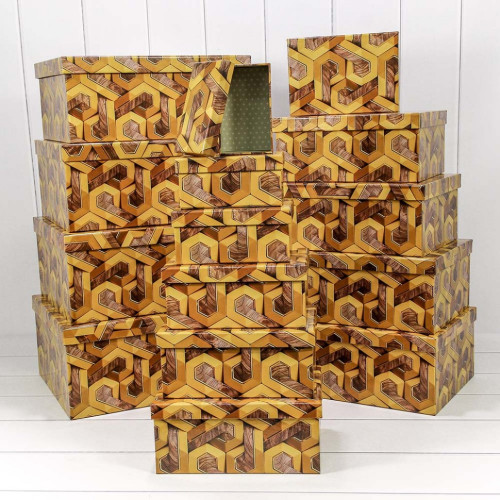 Коробка 42.5х33х17.6 см Набор 15 шт "Золотой узор" (Коричневый)