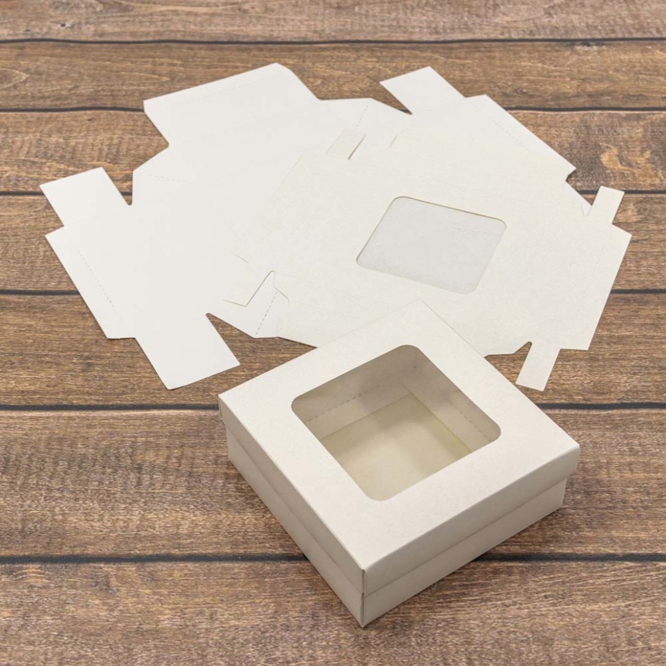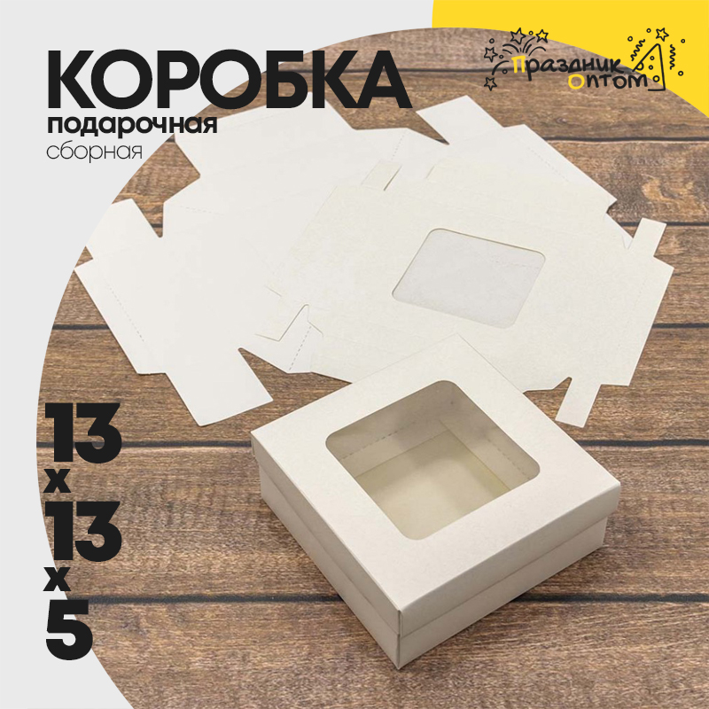 Коробка Для конфет сборная 13х13х5 см с окошком (Белый, Крафт)