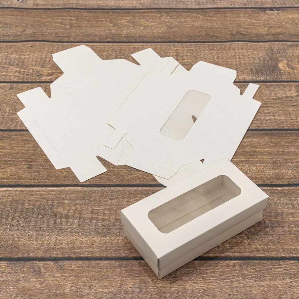Коробка Для конфет сборная 14х7х4 см с окошком (Белый, Крафт)