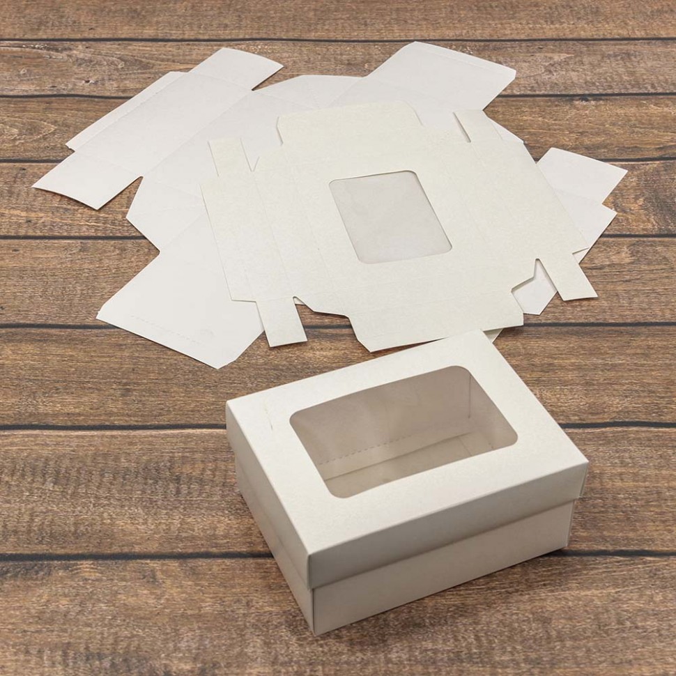 Коробка Для конфет сборная 16х12х7 см с окошком (Белый, Крафт)