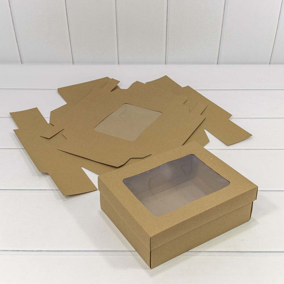 Коробка Для конфет сборная 20х16х7 см с окошком (Коричневый, Крафт)
