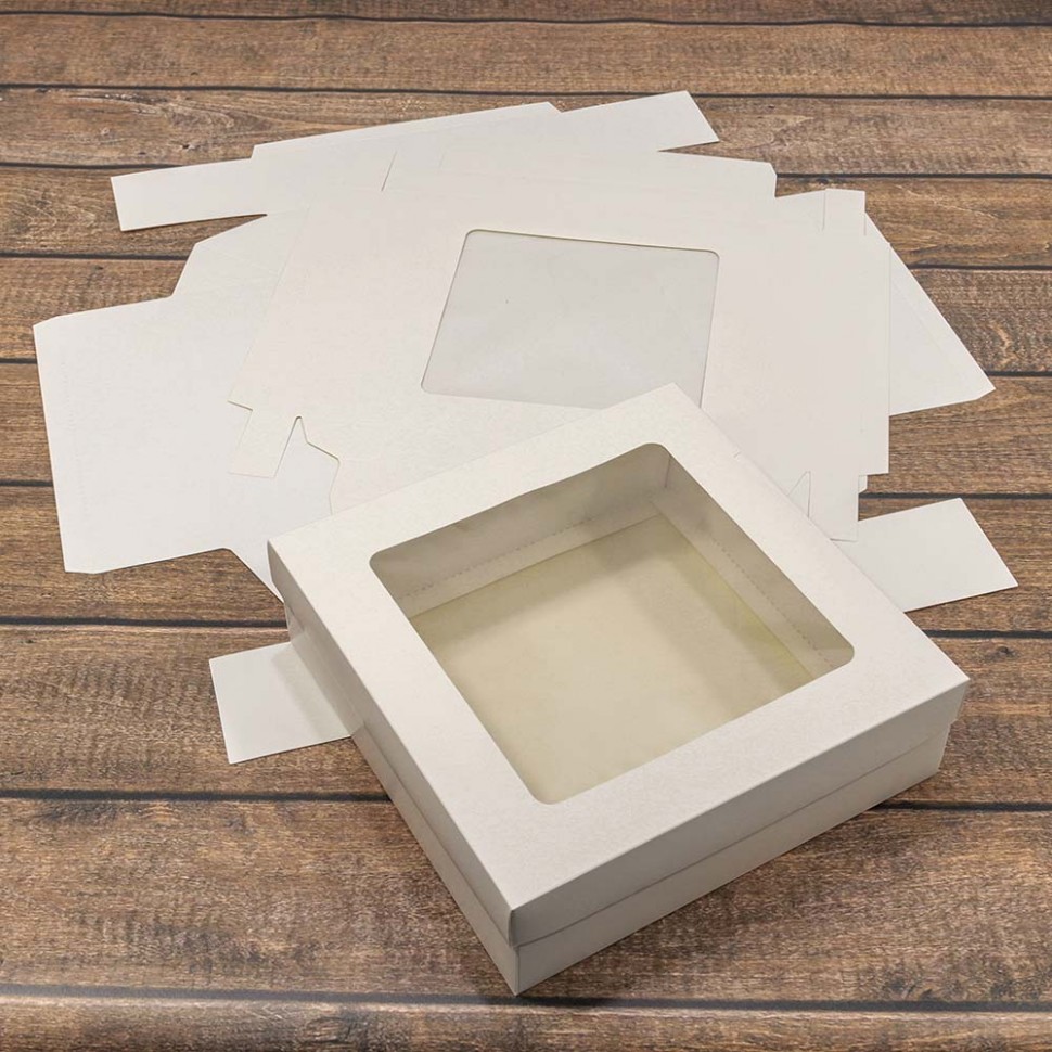Коробка Для конфет сборная 22.5х22.5х7 см с окошком (Белый, Крафт)