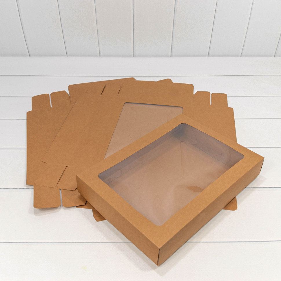 Коробка Для конфет сборная 35х25х6 см с окошком (Коричневый, Крафт)