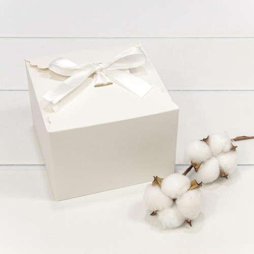 Коробка сборная 14х14х10 см с атласной лентой (Белый)
