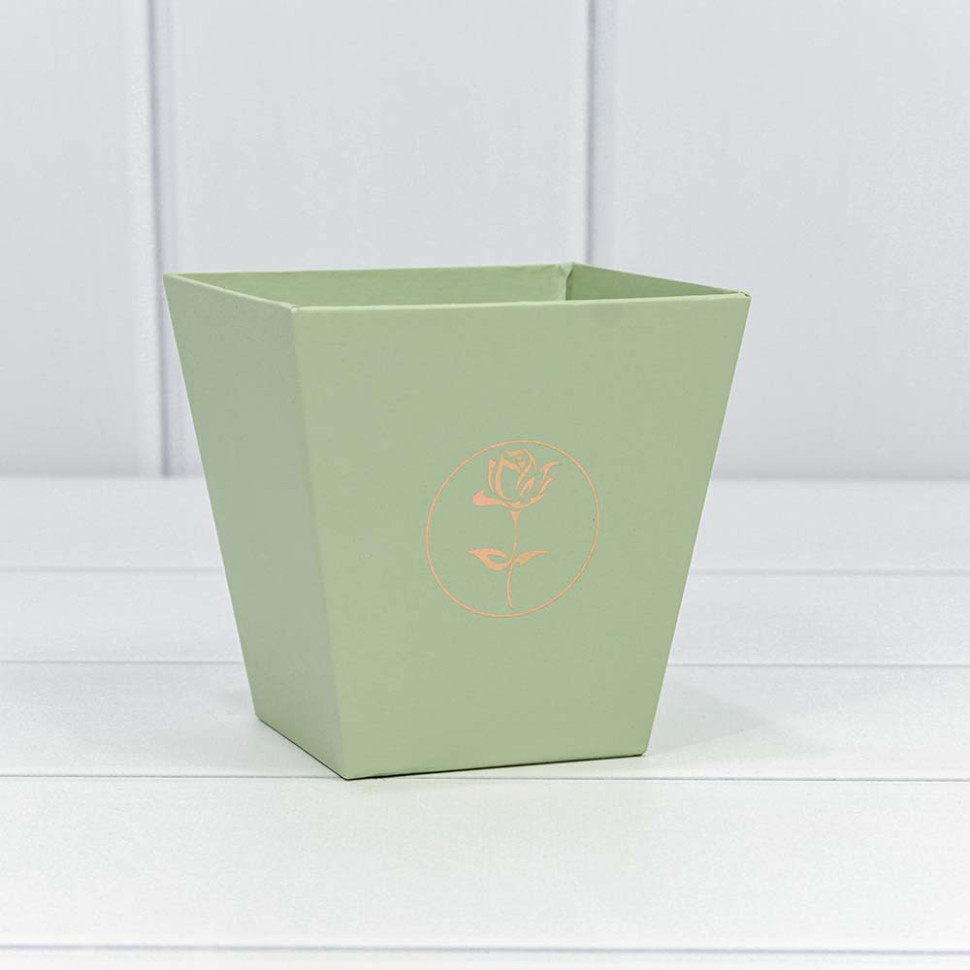 Коробка Ваза для цветов 10.6х10.7х7.2 см "Мини" с тиснением (Зеленый)