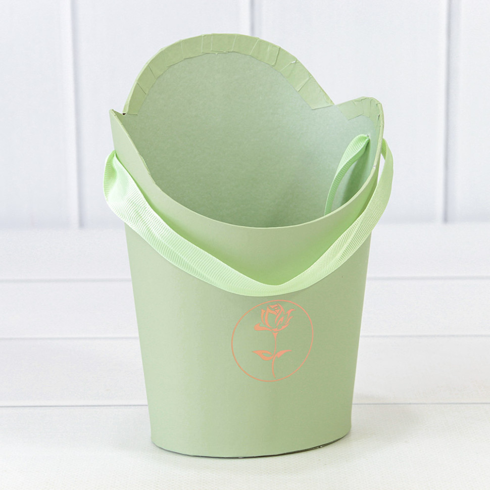 Коробка Ваза для цветов 13.5х10х19 см "Каллиграфия" (Зеленый)