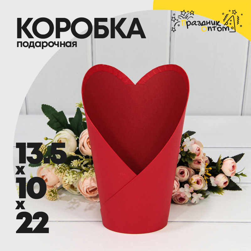 Коробка Ваза для цветов 13.5х10х22 см (Красный)