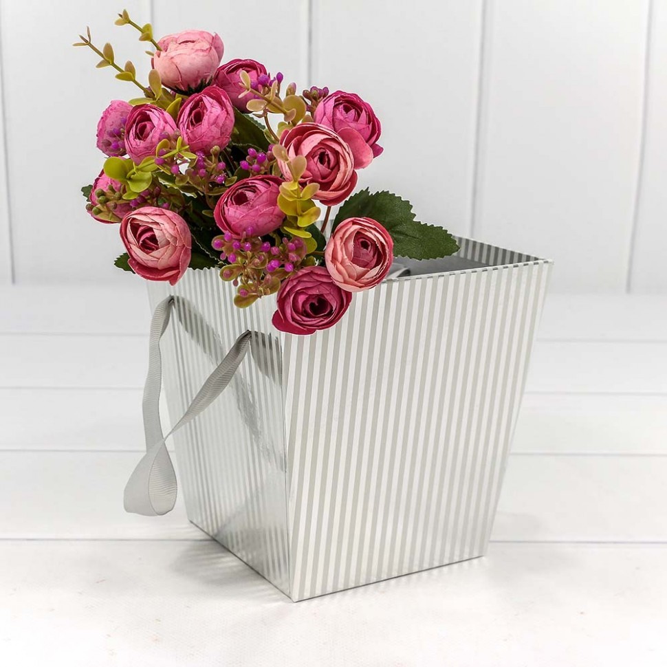 Коробка Ваза для цветов 14.5х14.5х15 см с ручками (Серебряный)
